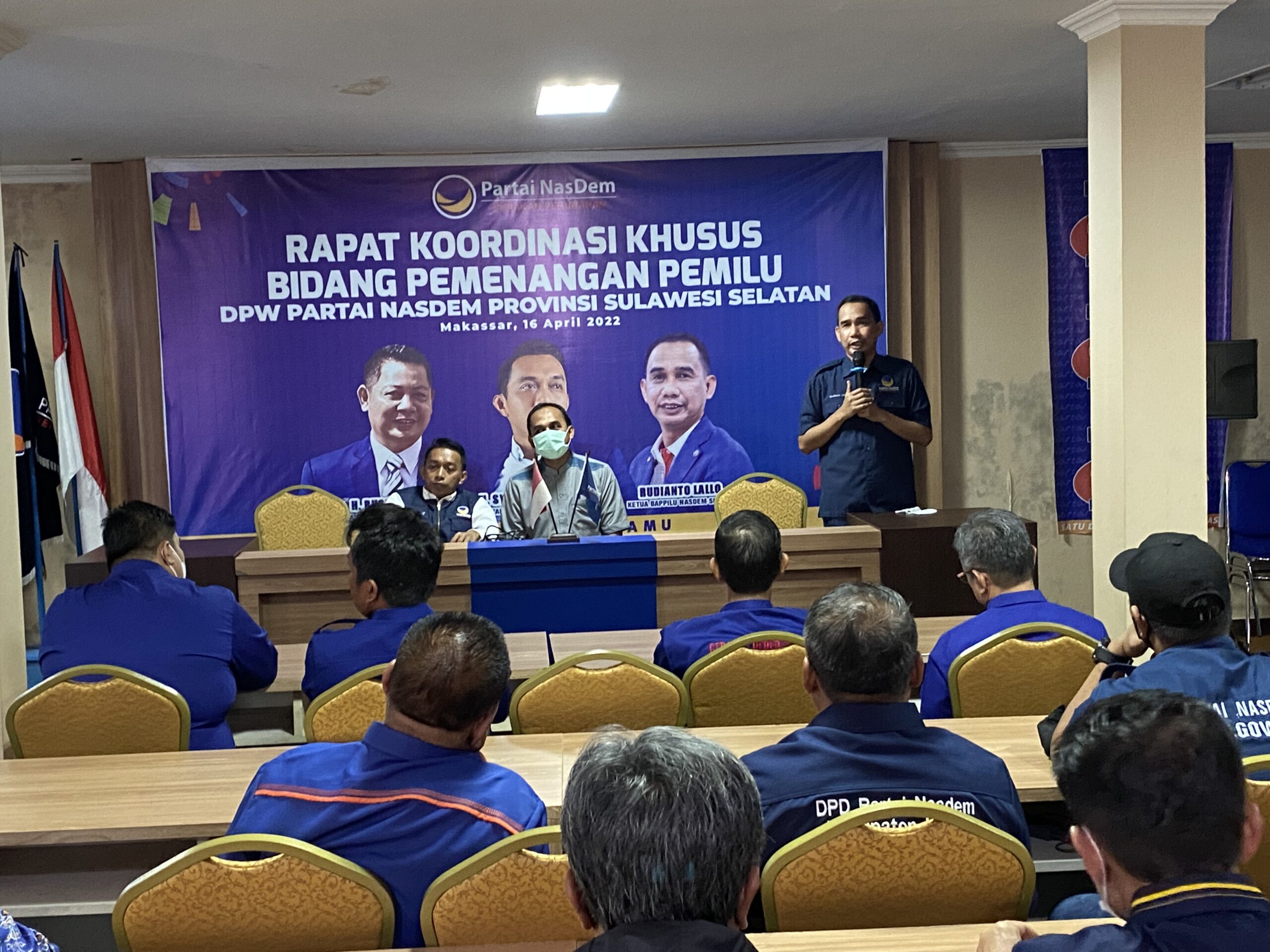 Pedomanrakyat.com, Makassar – Ketua Bappilu NasDem Sulawesi Selatan, Rudianto Lallo melakukan rapat kordinasi khusus (Rakorsus) dengan para Ketua atau kordinator Bappilu NasDem se-Sulsel, di DPW NasDem Sulsel, pada Sabtu (16/4/2022).