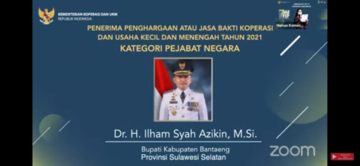 Penghargaan Jasa Bakti Koperasi dan UKM ini adalah yang pertama kalinya diterima Kabupaten Bantaeng. Di Sulsel, hanya ada dua kepala daerah yang menerima penghargaan ini. Selain Bantaeng, penghargaan serupa juga diterima Bupati Sinjai, Andi Seto Asapa. Penghargaan itu diterima melalui pertemuan virtual aplikasi zoom.