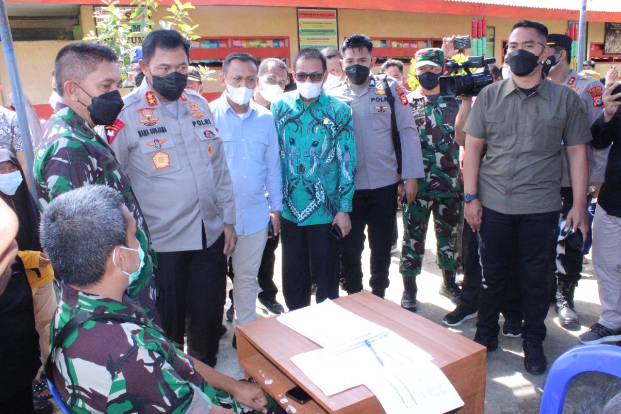Dalam pementauan sekaligus video confrence dengan Presiden RI tersebut dan Kapolri tersebut, juga disertai pemberian sembako kepada masyarakat yang ikut vaksinasi.