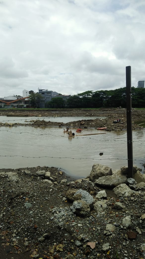 Tak hanya memancing, jika sudah jenuh, terkadang anak-anak yang datang juga menjadikan genangan itu sebagai tempat berenang.