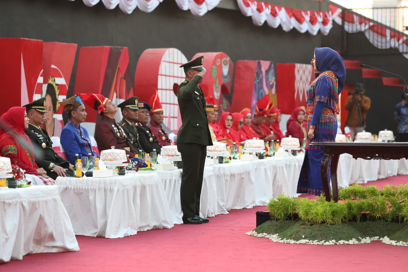 Selepas penurunan bendera, Fatmawati Rusdi menyampaikan apresiasi dan ucapan terima kasih kepada seluruh pasukan pengibaran dan penurunan bendera.