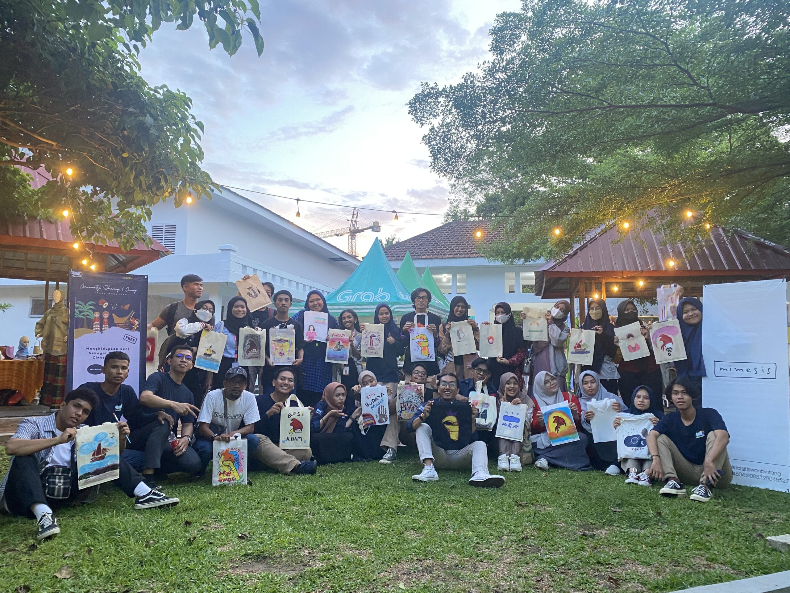 Kemudian, dilanjutkan sharing dengan pemateri Iswan Bintang (Visual Artist) dan Owner Mimesis selaku pembicara dan dilanjutkan melukis bersama di atas media totebag.