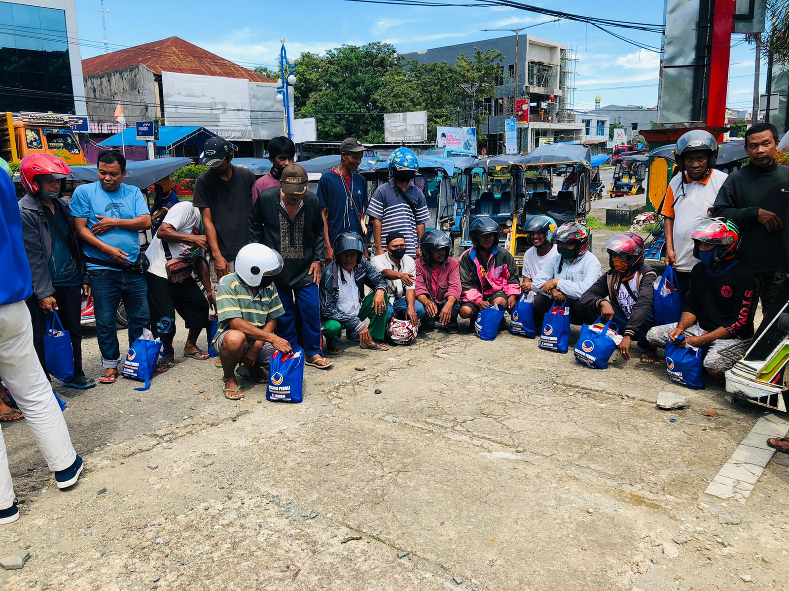 Legislator Fraksi NasDem Sulsel, H Irwan melalui timnya, memberi bantuan ratusan tukang bentor yang mangkal setiap harinya di wilayah Pangkep.