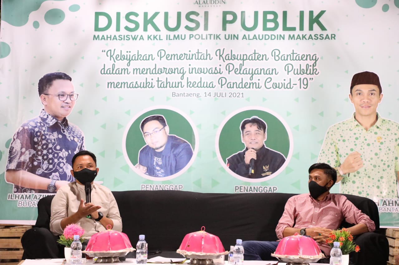 Diskusi itu menghadirkan pembicara Bupati Bantaeng, Ilham Syah Azikin, dan Ketua DPRD Bantaeng, Hamsyah Ahmad. Selanjutnya penanggap, Dosen Ilmu Politik UIN Alauddin Makassar, Fajar, M.Si dan Mahbub Ali Muhyar. Turut hadir pula sejumlah kepala OPD maupun perwakilannya.