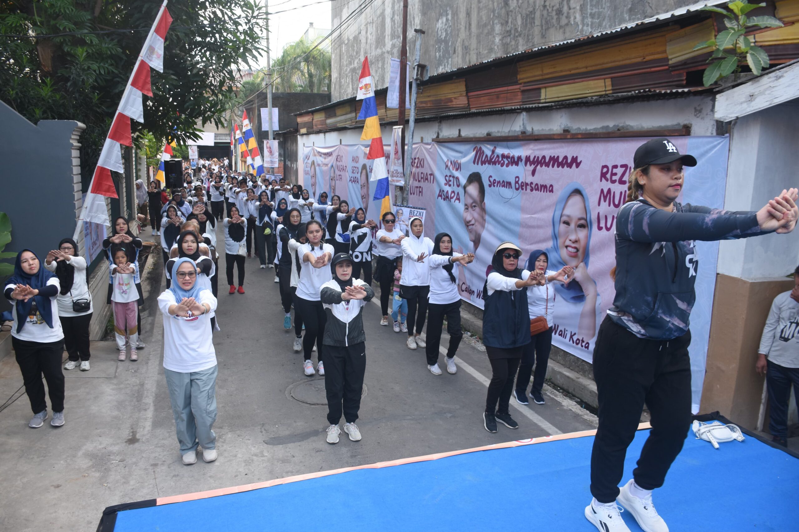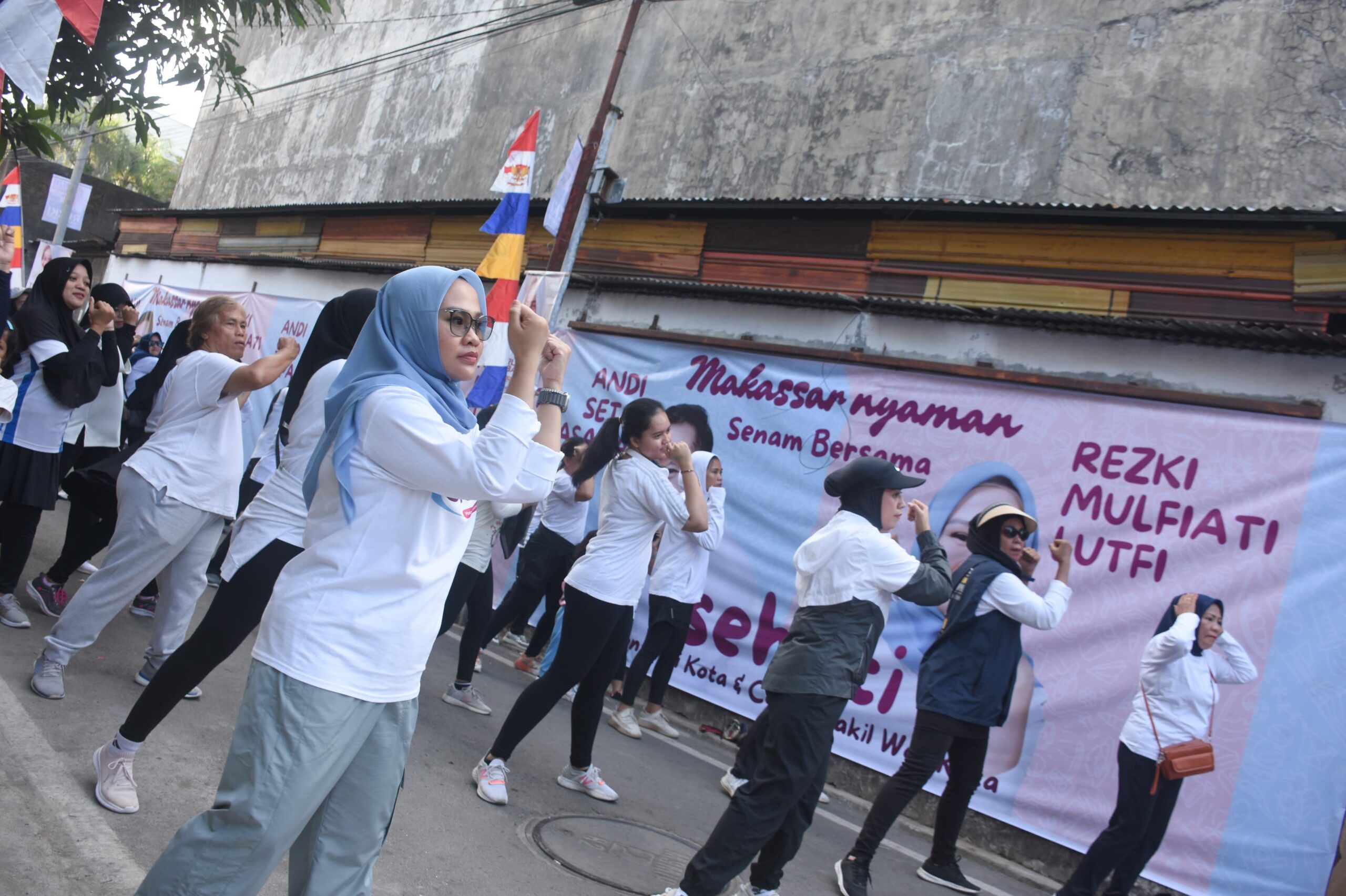 Balon Wawali Kota Makassar, Rezki Mulfiati Lutfi Senam Sehati Bersama Warga Maricaya.