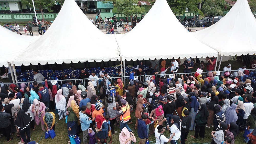 Meski sempat terjadi desak-desakan saat pembagian dilakukan, namun panitia lebih dulu mengantisipasi antrian warga sehingga pembagian bisa berjalan dengan tertib.
