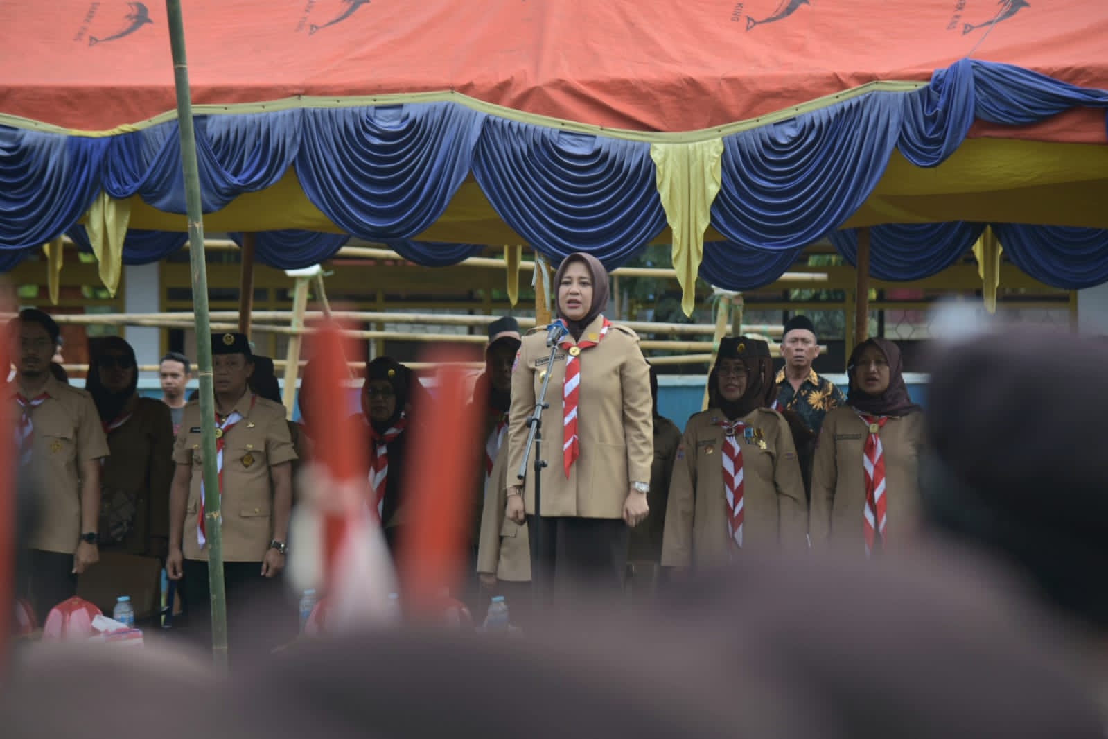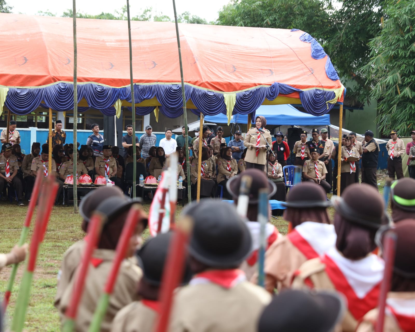 Pada kesempatan tersebut, Fatmawati Rusdi membakar semangat peserta lomba yang terdiri dari 43 regu Pramuka Siaga dan Penggalang.