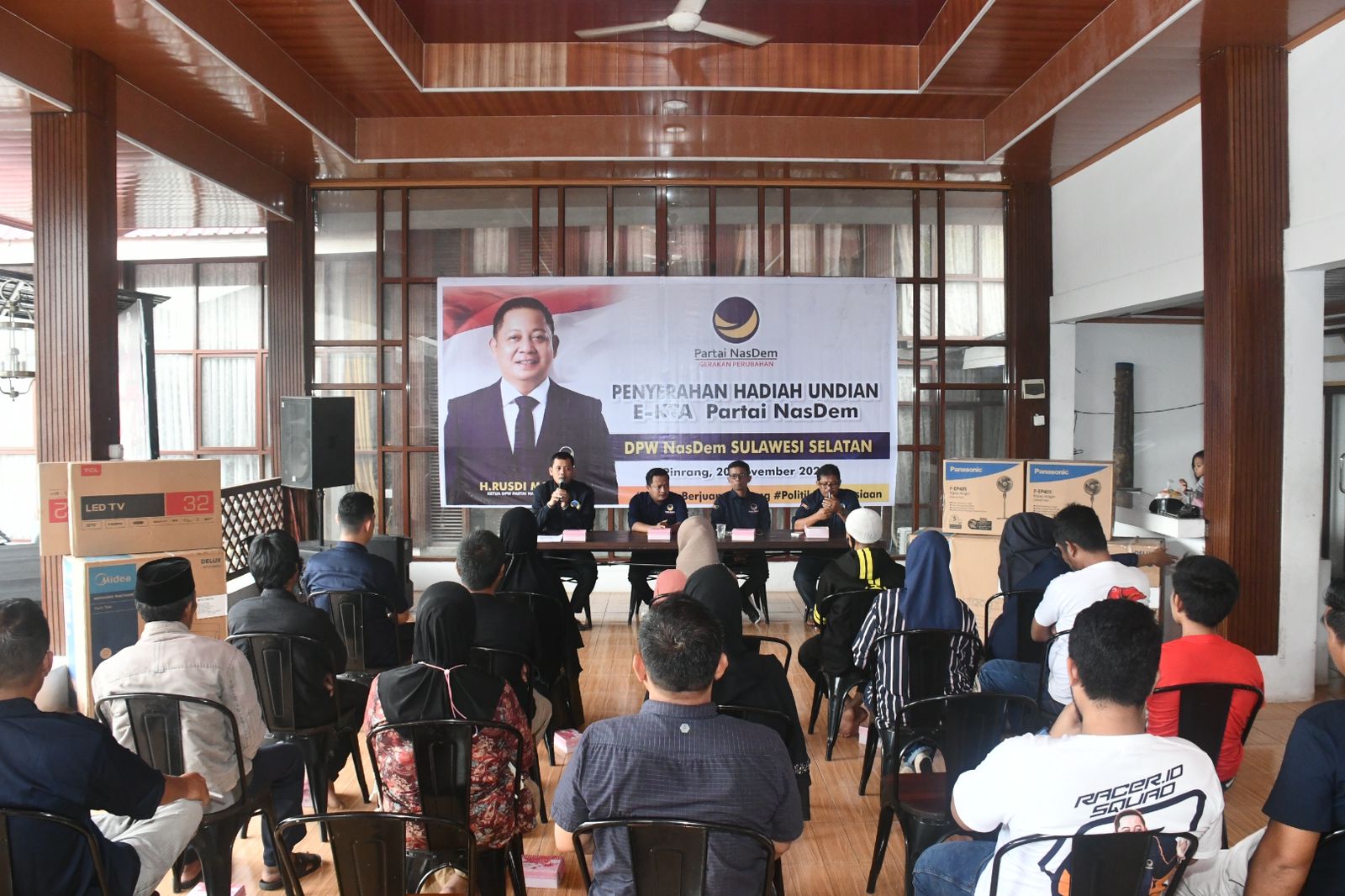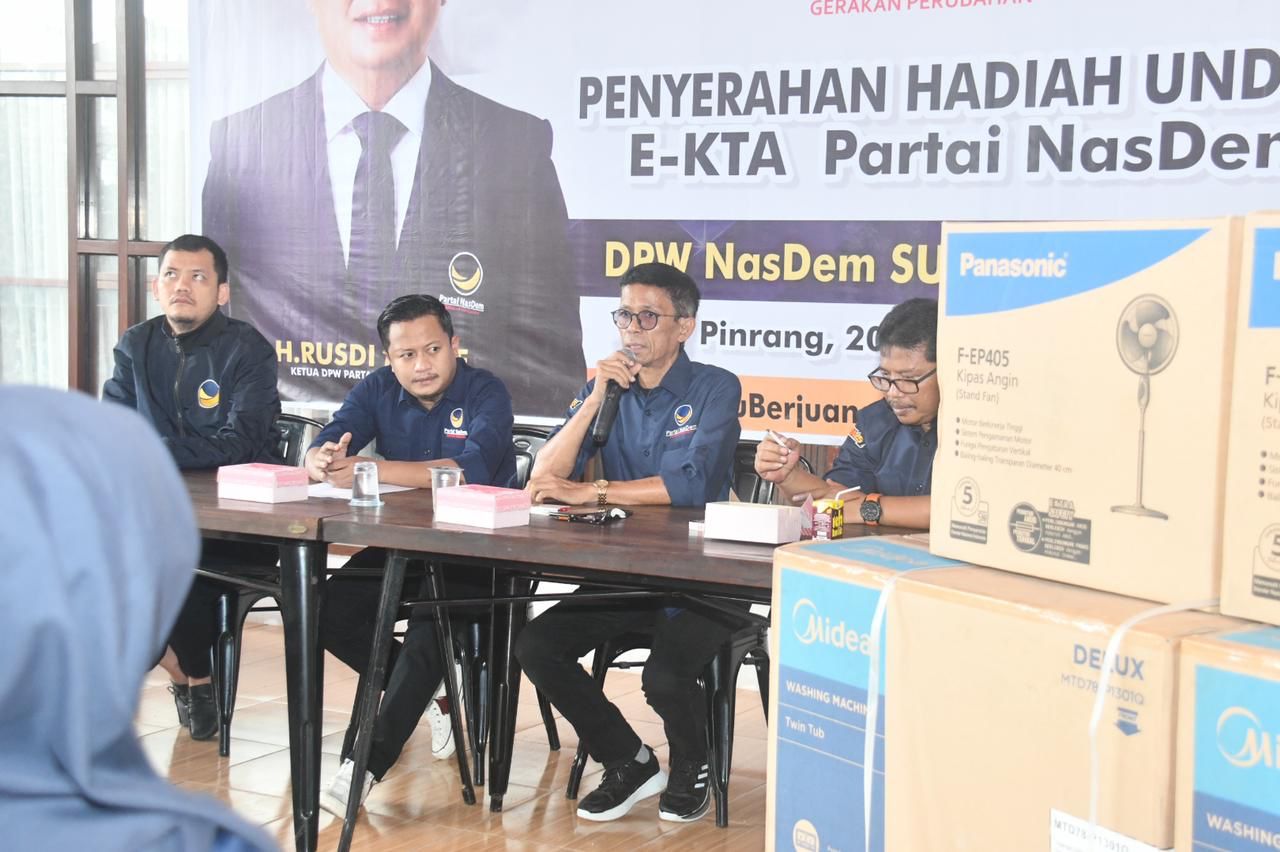 Penyerahan hadian undian gebyar E-KTA NasDem Sulsel untuk kader ini, diserahkan di Rumah Aspirasi Rusdi Masse atau RMS, di Jalan Serigala, Kelurahan Maccorawalie, Kecamatan Wattang Sawitto, Pinrang.