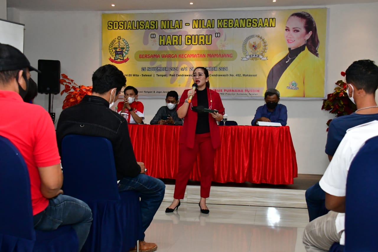 Pedoman Rakyat, Makassar – Anggota DPRD Sulawesi Selatan, dari fraksi Golkar, Debbie Purnama Rusdin kembali menyapa konstituennya di Kecamatan Mamajang melalui Sosialisasi nilai-nilai Kebangsaan dengan mengangkat tema “Hari Guru”.