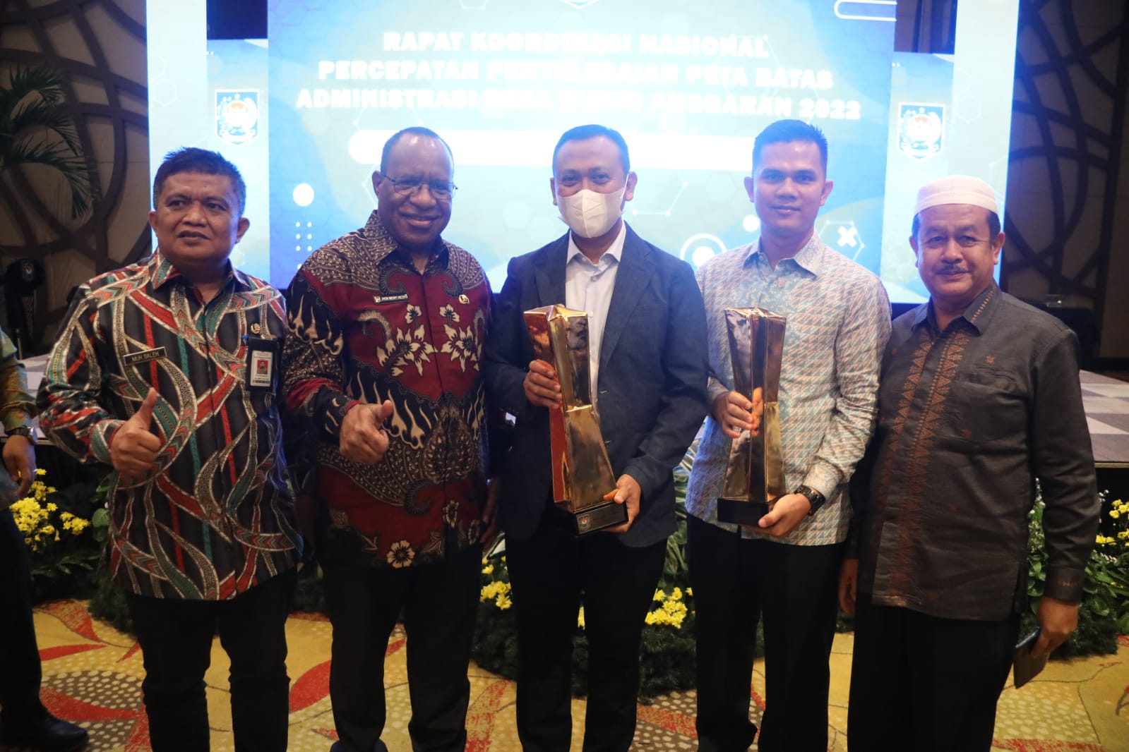 Penghargaan ini diperoleh, berdasarkan hasil evaluasi Kemendagri terkait pemerintah kabupaten yang serius dan melakukan percepatan penegasan batas desa.