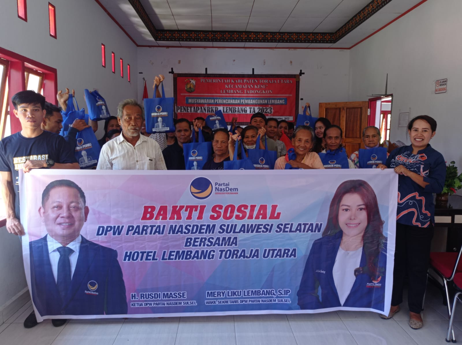 Di mana, Meru Liku Lembang melaksanakan Bakti Sosial atau Baksos DPW NasDem Sulsel di Lembang, Desa Tadongkon, Kabupaten Toraja Utara, Selasa (25/10/2022).