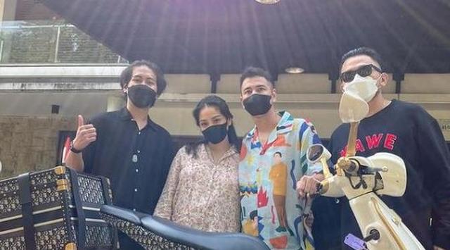 Di situ, dia memperlihatkan tiga foto. Pertama, dia berpose di dekat motor vespa bersama sang istri dengan menunjukkan wajah bahagia. Foto selanjutnya, dia dan Nagita Slavina berfoto dengan teman-temannya.