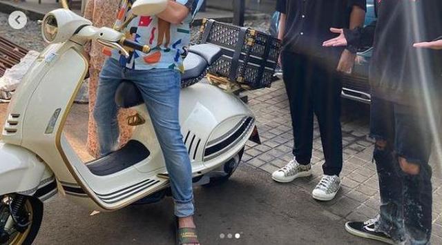 Dalam keterangan foto, Raffi Ahmad mengatakan sengaja membelikan motor vespa 946 Christian Dior untuk membahagiakan sang istri yang yang tengah ngidam dan hamil tujuh bulan.