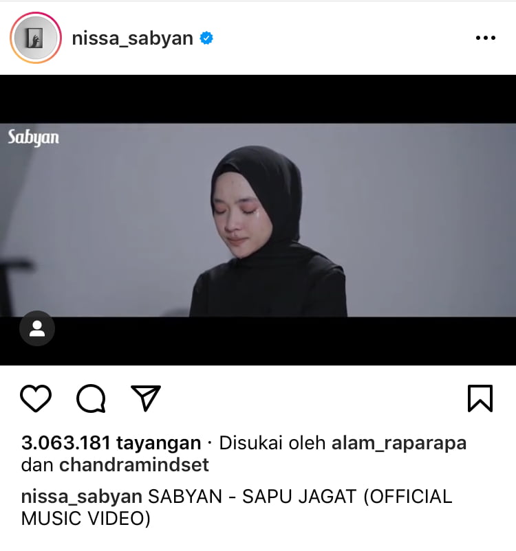 Di akhir video, Nissa Sabyan tersenyum kecil ke arah kamera. Tertulis pula keterangan “Terima kasih telah menghargai karya-karya Sabyan, 13 Maret 2021″.