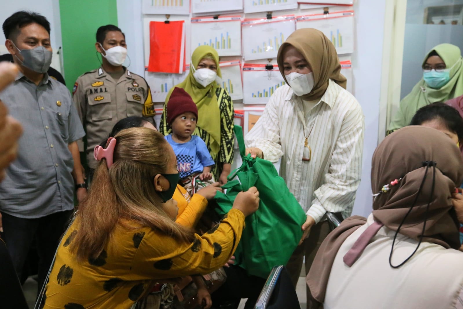 Setelah berbincang dengan para orang tua juga para Kepala Puskesmas juga camat serta Plt Kepala Dinas Kesehatan Makassar, Wawali Fatma kemudian memberikan bantuan makanan dan vitamin bagi anak yang telah di kategorikan stunting.