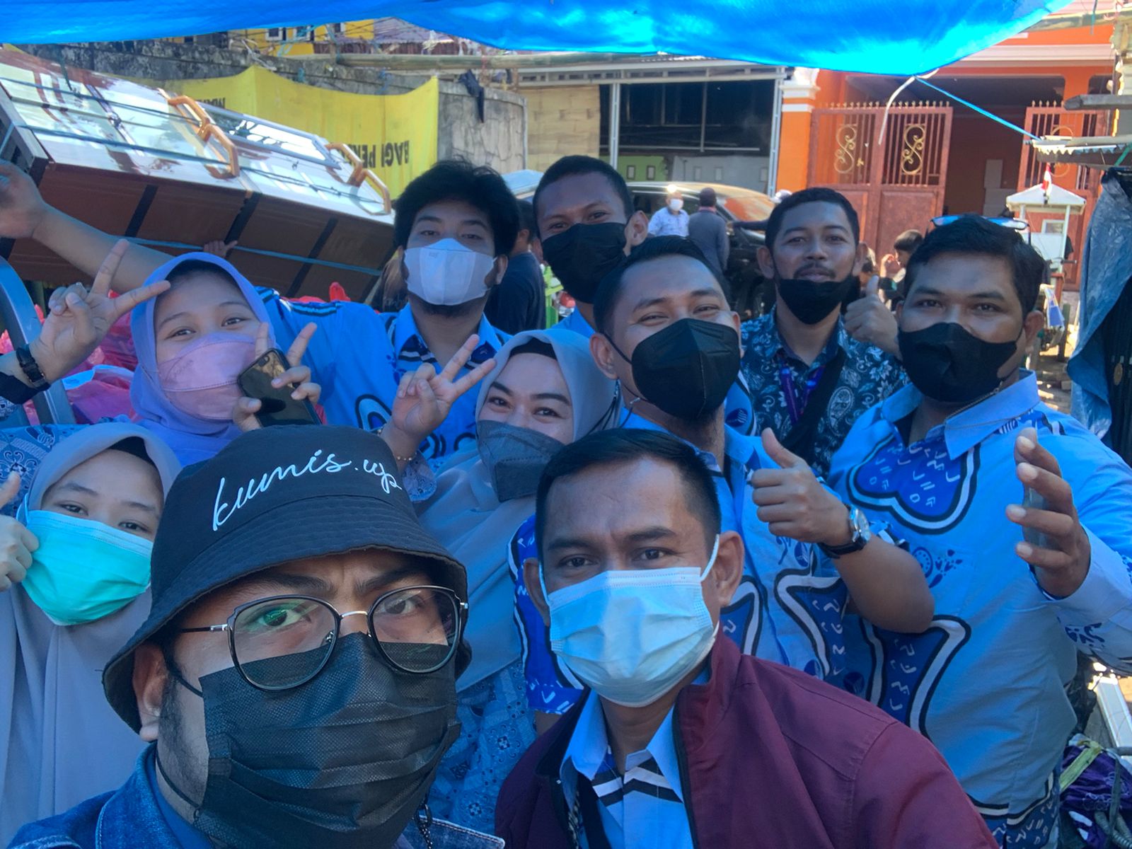 Para karyawan Perumda Air Minum Kota Makassar, berfoto bersama usai menyerahkan bantuan kemanusiaan untuk korban kebakaran di Lepping.