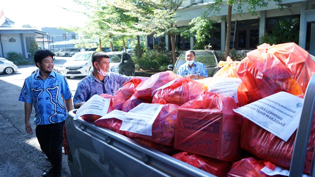 Bantuan kemanusiaan yang disalurkan Perumda Air MInum Kota Makassar untuk korban kebakaran di Lepping, berasal dari sumbangan karyawan, karyawati, dan direksi Perumda Air MInum Kota Makassar.