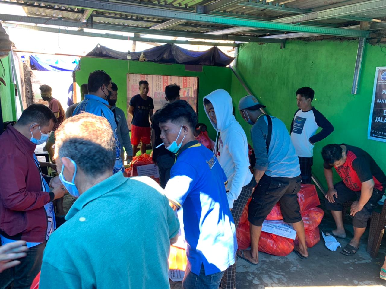 Suasana pembagian bantuan kemanusiaan dari Perumda Air Minum Kota Makassar.