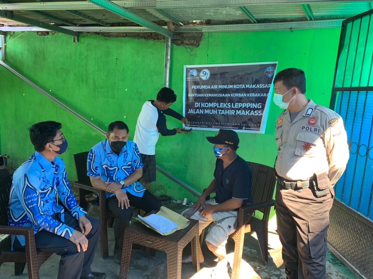Penyaluran bantuan kemanusiaan yang dilakukan Perumda Air Minum Kota Makassar untuk korban kebakaran di Lepping, sangat menerapkan protokol kesehatan (Prokes) ketat. Hal ini dilakukan untuk mencegah penyebaran virus covid-19 di Kota Makassar.