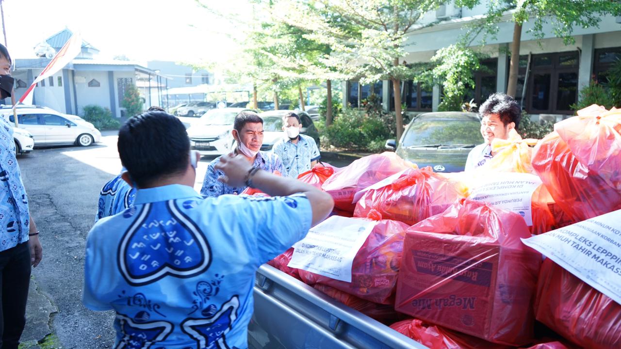 Bantuan kemanusiaan yang disalurkan Perumda Air MInum Kota Makassar untuk korban kebakaran di Lepping, berasal dari sumbangan karyawan, karyawati, dan direksi Perumda Air MInum Kota Makassar.