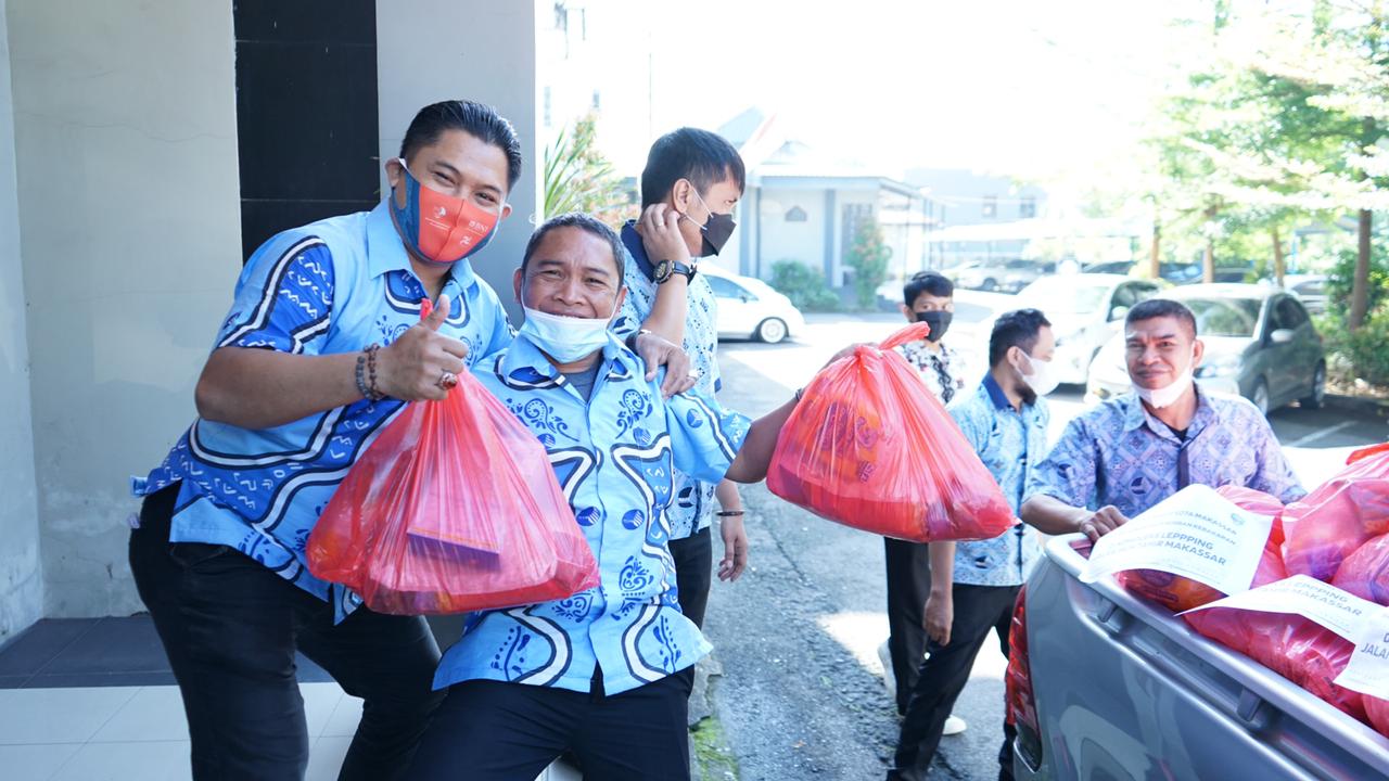 Pihak Perumda Air Minum Kota Makassar saat salurkan bantuan kemanusiaan.