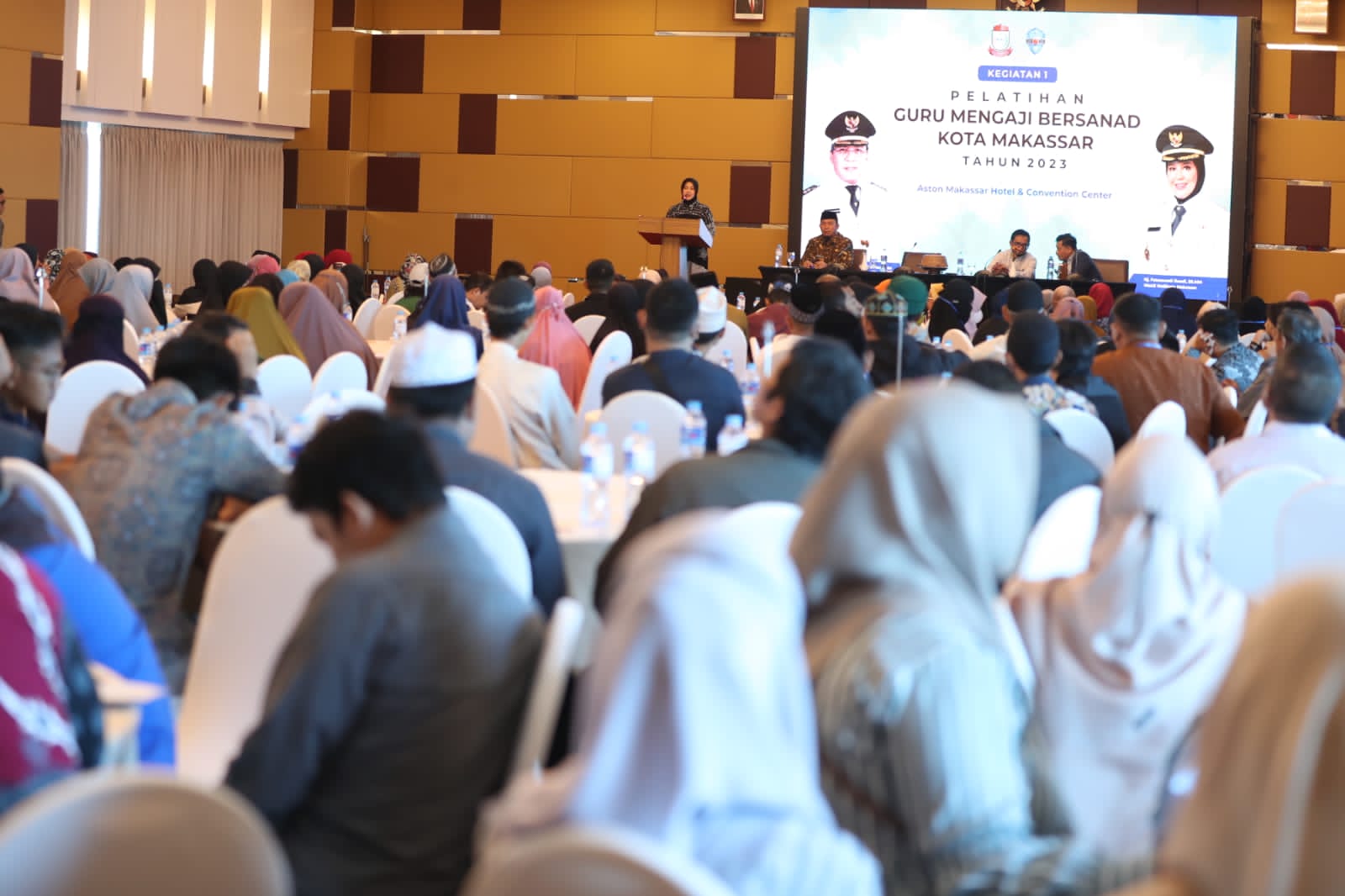 Wakil Wali Kota Makassar, Fatmawati Rusdi membuka secara resmi pelatihan yang menghadirkan Syaamil Qur’an Bandung, Febrianto Zubair Mooduto.