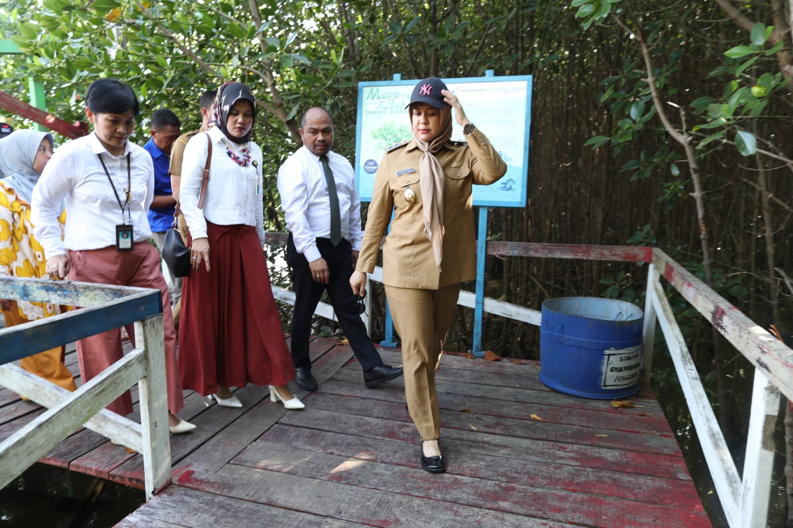 Pedomanrakyat.com, Makassar – Wakil Wali Kota Makassar, Fatmawati Rusdi didampingi Kepala Dinas Pariwisata Kota Makassar, Muhammad Roem, melakukan peninjauan secara langsung di wisata Mangrove Lantebung, Senin (5/06/2023).
