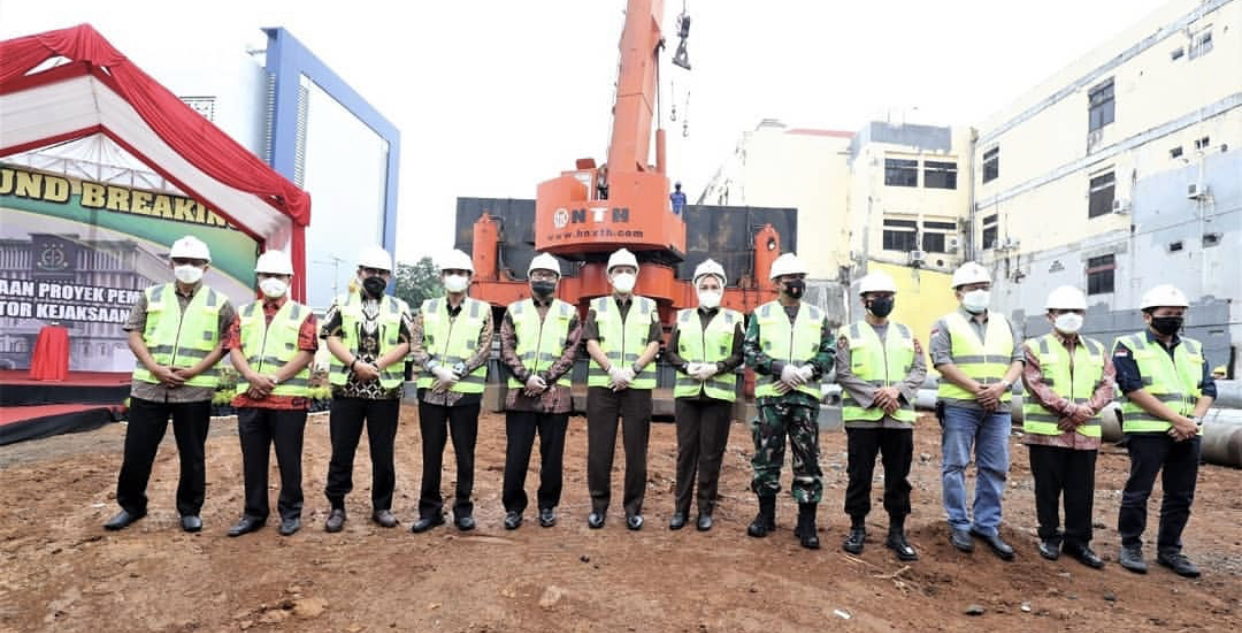 Breaking ground Kajari Makassar dihadiri Sekda Kota Makassar Muh. Ansar, Kajati Sulsel Raden Febrianto ketua DPRD kota Makassar Rudianto Lallo, Dandim 1408/Makassar Kolonel.Kav Dwi Irbaya Sandra.