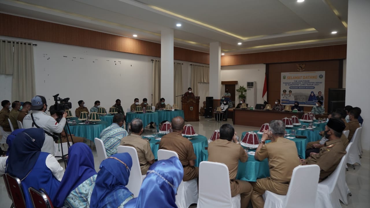 Pedoman Rakyat, Luwu – Tim Verifikasi Nasional Kabupaten/Kota Sehat (KKS) turun ke Kabupaten Luwu untuk melakukan verifikasi lapangan. Rombongan disambut langsung oleh Bupati Luwu, Dr H Basmin Mattayang bersama Kapolres Luwu, AKBP Fajar Dani Susanto, Plt Pabung 1403 Palopo, Kapten CBA Marthen Luther, Ketua Forum Kabupaten Sehat Kabupaten Luwu, Dr Hj Hayarna Basmin dan pejabat eselon II di aula rumah jabatan Bupati, Kelurahan Pammanu Kecamatan Belopa Utara, Selasa (28/9/2021)