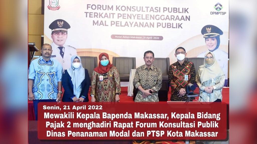Mewakili kepala Bapenda Makassar, kepala bidang pajak 2 menghadiri rapat forum konsultasi publik dinas penanaman modal dan PTSP makassar.