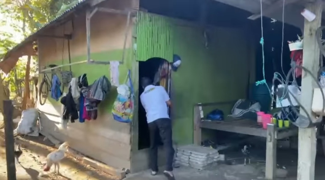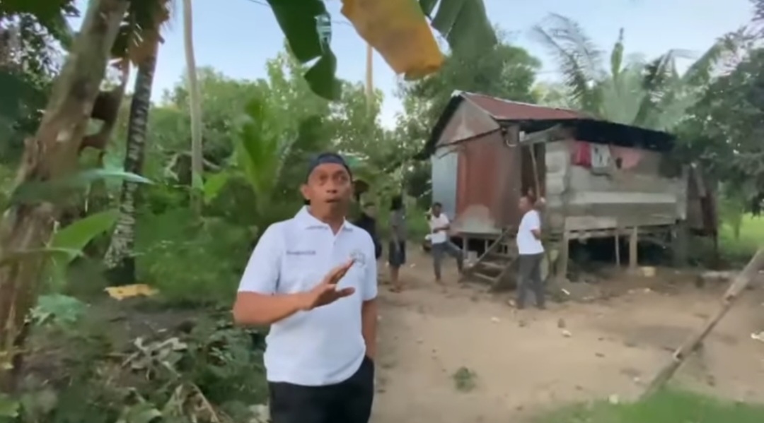 Kali ini Syahar mendatangi rumah warga yang hanya berukuran 3×2, yang tinggal sama anaknya. Terlihat rumah panggung itu hanya berdinding seng.