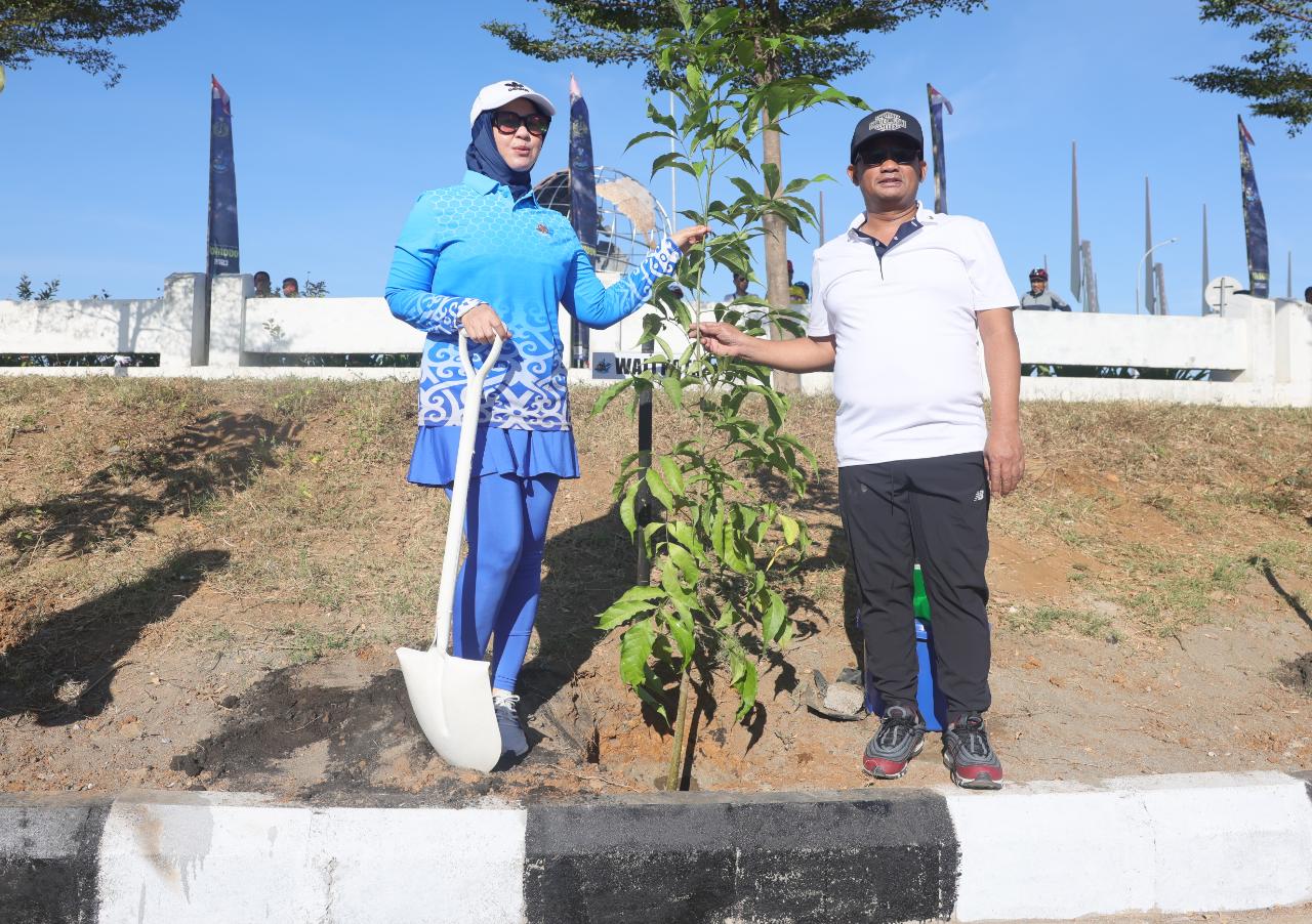 Wakil Wali Kota Makassar, Fatmawati Rusdi bersama Plt Kadis DLH, Ferdy mendampingi langsung perwakilan delegasi TNI AL dari 36 negara di dunia menanam pohon bersama-sama.
