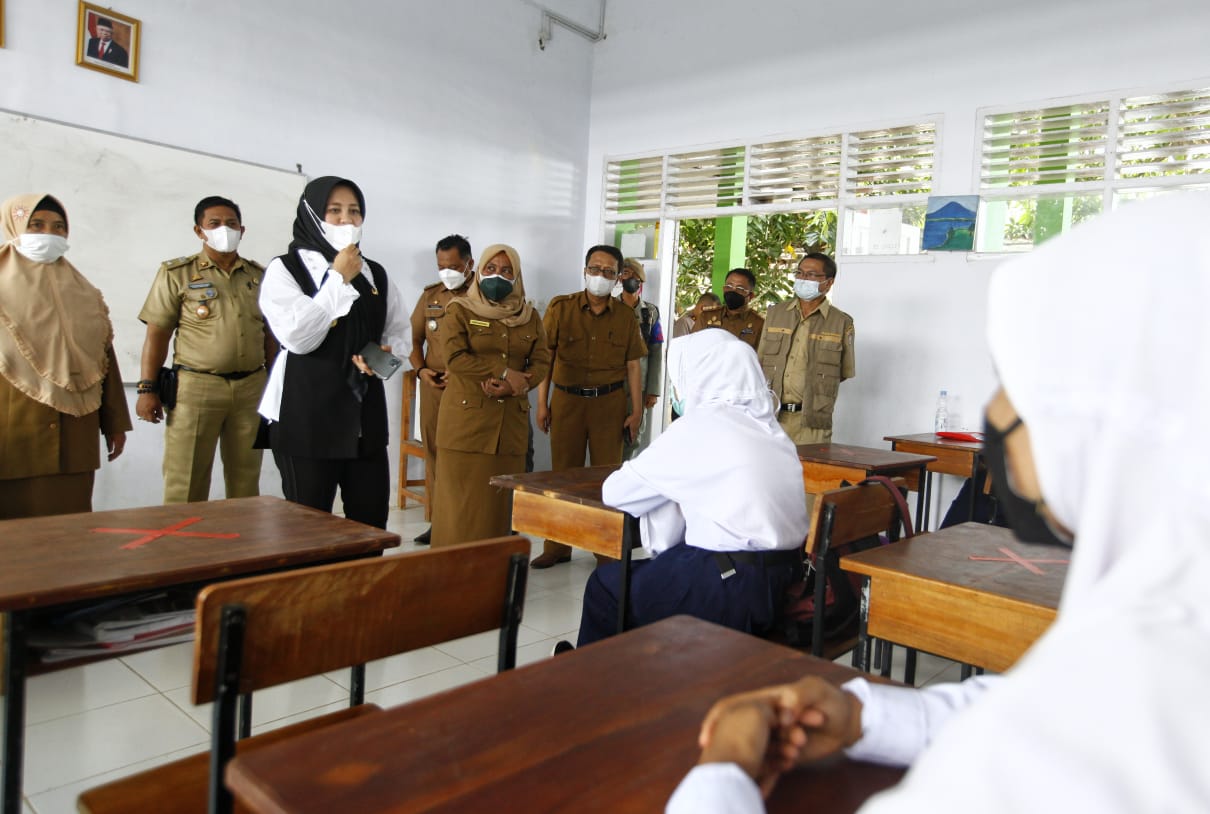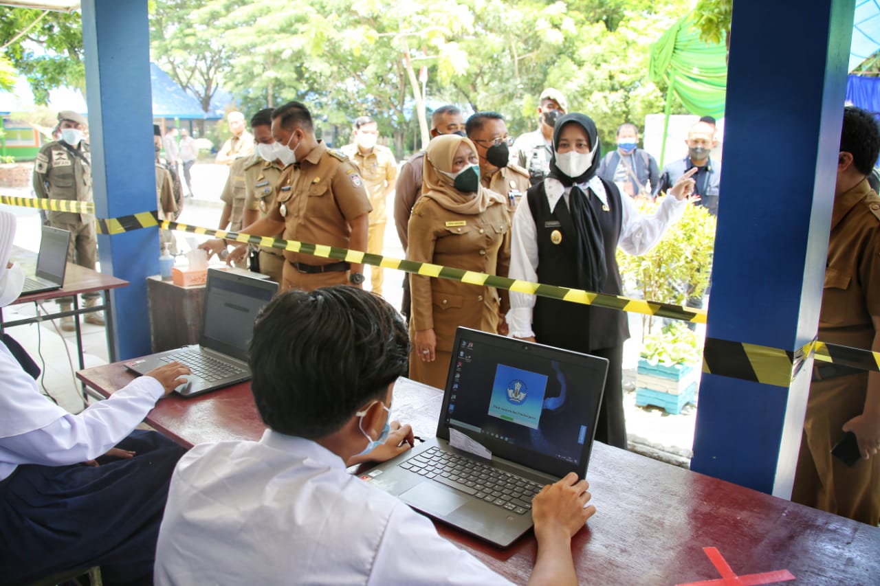 Khusus di SMPN 15 Makassar, simulasinya ditinjau langsung oleh Wakil Wali Kota Makassar, Fatmawati Rusdi, Senin (4/10/21).