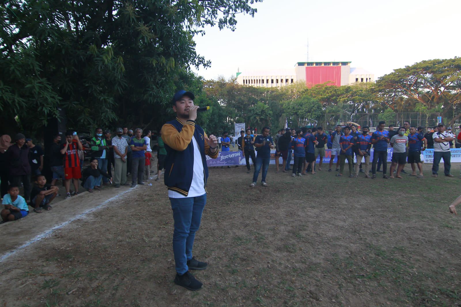 Terlihat, Anggota DPRD Sulsel, Andre Prasetyo Tanta (APT) menutup Turnamen Merdeka APT Cup SERIES 2022 sekaligus memberikan trophy piala kepada pemenang.