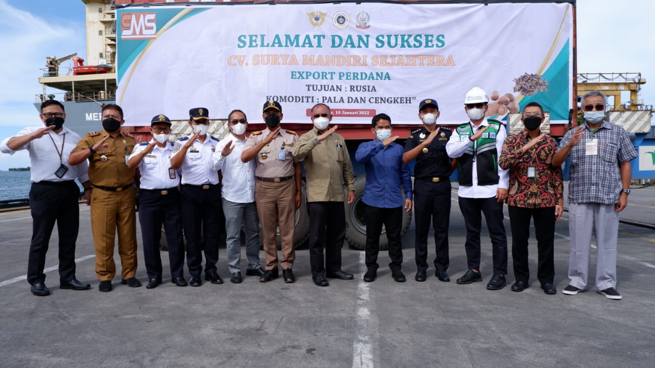 komoditas pala dan cengkeh yang diekspor langsung menuju Negara Rusia. Adapun ekspor yang dilakukan eksportir, CV Surya Mandiri Sejahtera dengan volume ekspor 15 ton senilai US$ 123.386,36 atau setara dengan Rp 1,7 Miliar.