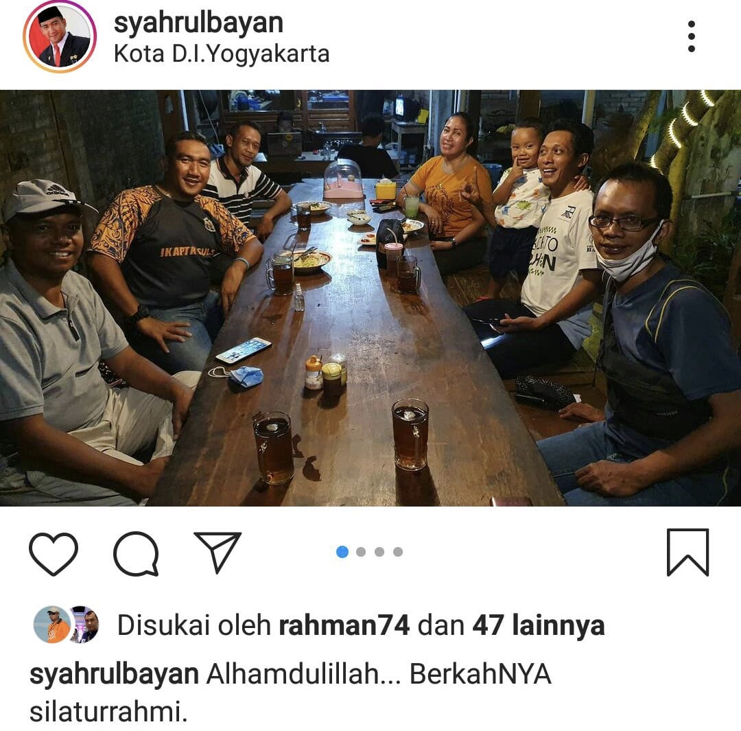 Dalam akun instagram Syahrul Bayan, terlihat beberapa foto dia tidak menggunakan masker dan mengabaikan protokol kesehatan selama berada di Yogjakarta.