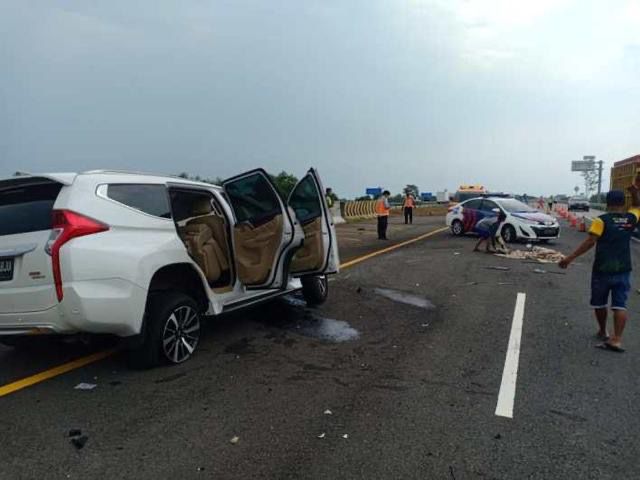 Diduga di dalam kendaraan itu adalah Vanessa Angel dan keluarganya.