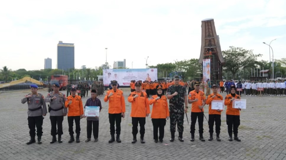 Di kawasan MNEK Centre Point of Indonesia (CPI), Wali Kota Makassar, Munafri Arifuddin memimpin Apel Gabungan Kesiapsiagaan Terhadap Bencana Kota Makassar 2025, yang digelar oleh BPBD Kota Makassar, Selasa (7/10/2025).