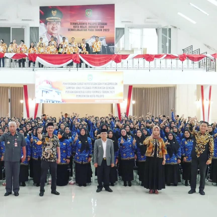 Pedomanrakyat.com, Palopo – Penyerahan Surat Keputusan dan Pengambilan Sumpah/Janji Pegawai Pemerintah dengan Perjanjian Kerja Guru Formasi Tahun 2021, Pemerintah Kota Palopo (04/11/2022) di ruang Ratona Kantor Walikota Palopo.