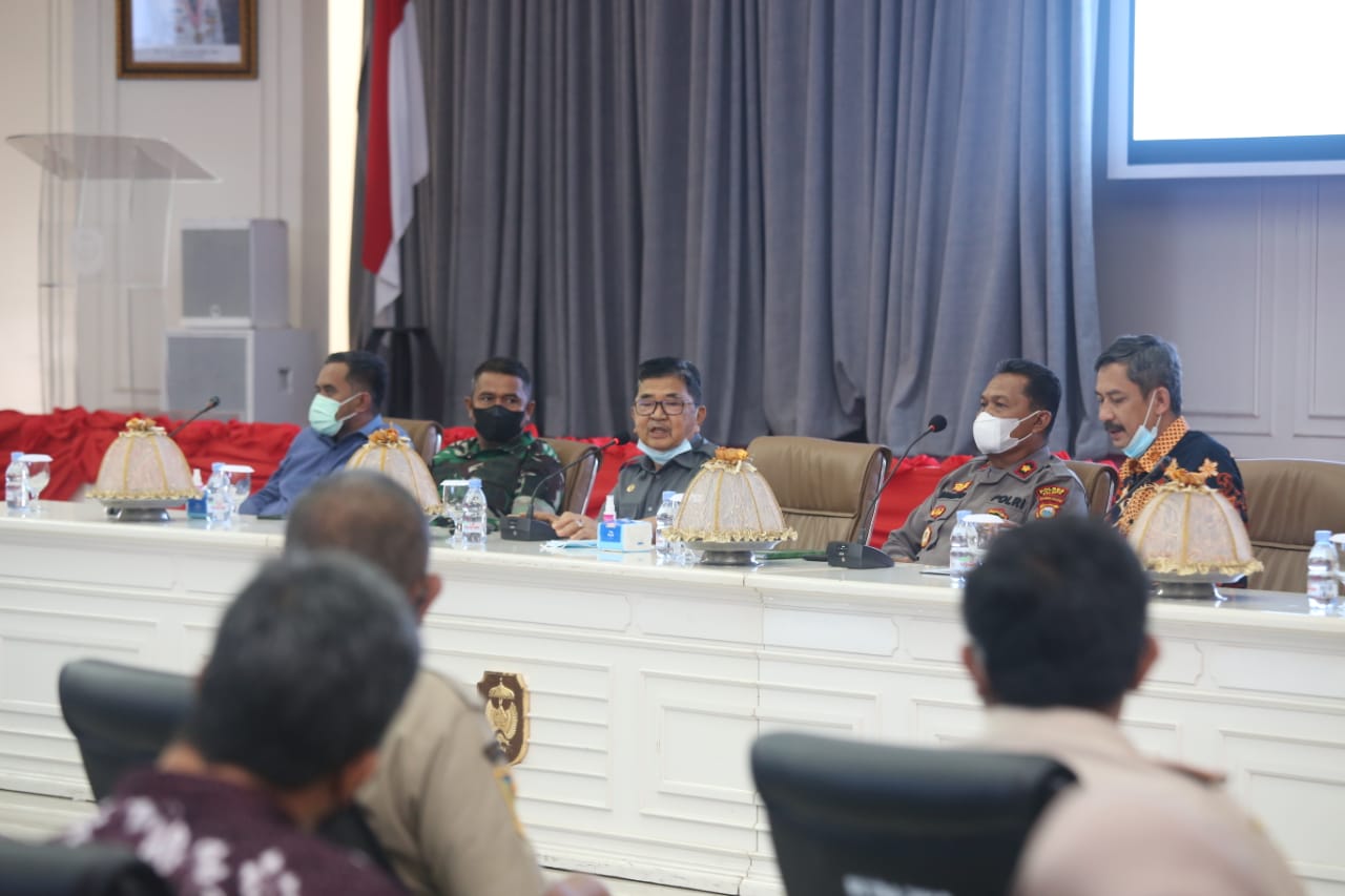 Pedoman Rakyat, Palopo – Walikota Palopo Judas Amir, pimpin rapat Monitoring dan Evaluasi Pelaksanaan Vaksinasi Anak Usia 6 s/d 11 Tahun bersama Forkopimda Lingkup Kota Palopo, Selasa, (01/02/ 2022).