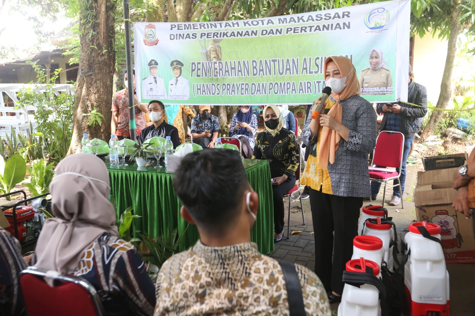 “Alat berupa Hand Sprayer berjumlah 100 unit termasuk 20 pompa air kepada kelompok tani maupun kelompok wanita tani binaan dari DP2 Kota Makassar dan ini akan terus berkelanjutan diberikan kepada kelompok kelompok tani lainnya,” terang Evi.