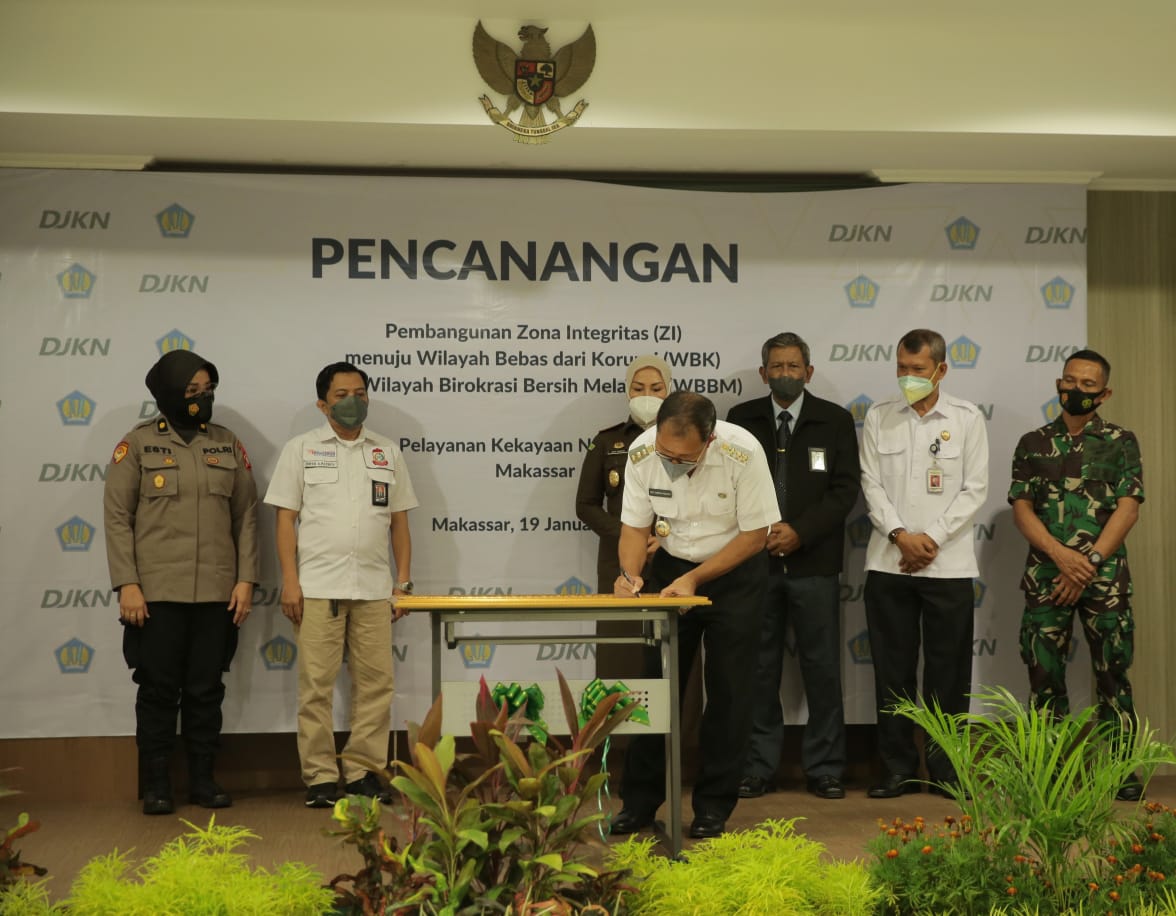 Dukungan tersebut ditandai dengan penandatanganan piagam pencanangan pembangunan Zona Integritas (ZI), oleh Wali Kota Makassar Moh. Ramdhan “Danny” Pomanto, dikantor Pelayanan Kekayaan Negara dan Lelang Negara. Gedung Keuangan Negara(GKN) lantai 2 Jalan Urip Sumoharjo Km 4. Rabu (19/1/2022).